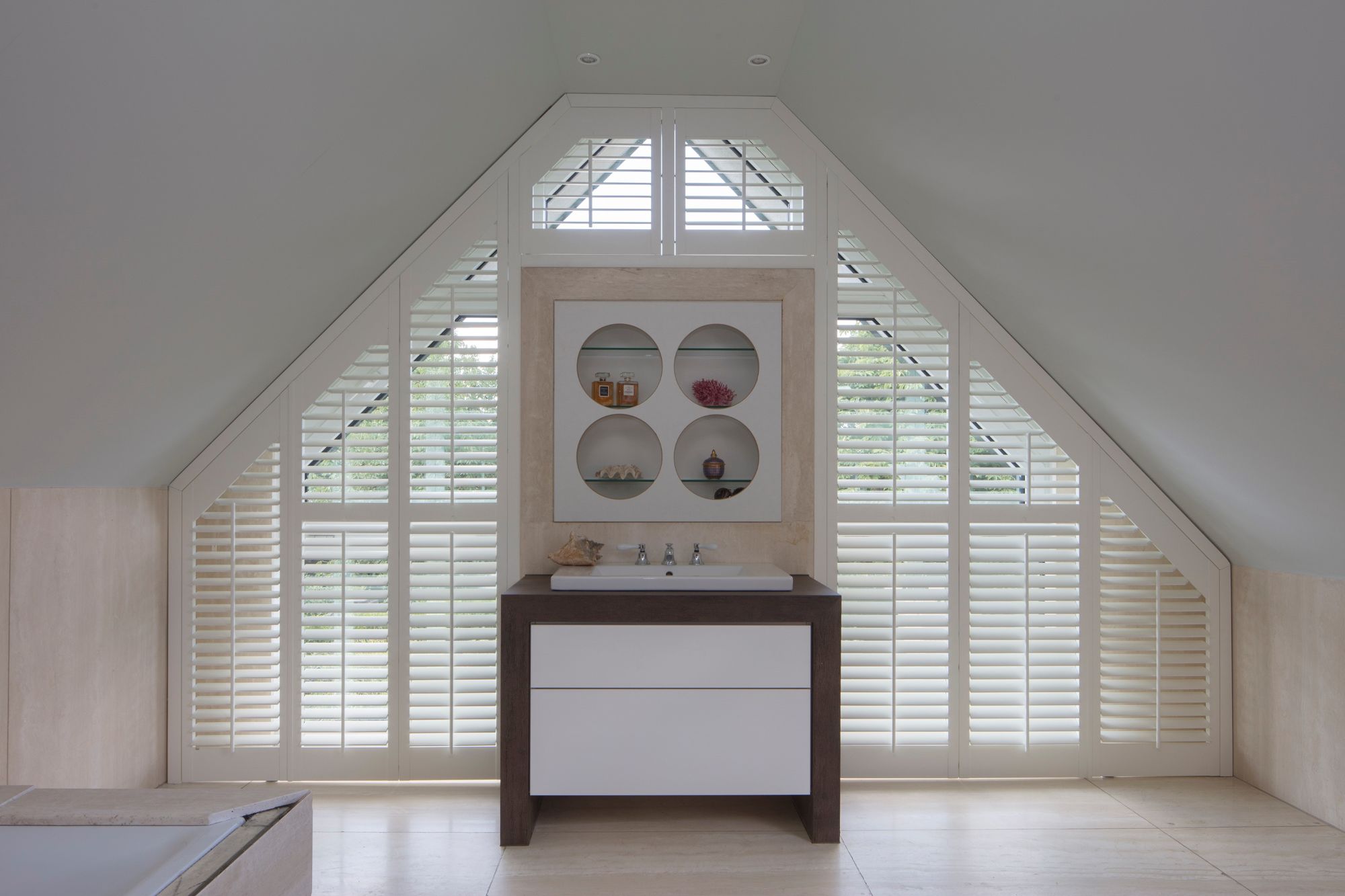Bovendien kan een zolder snel opwarmen. Door de perfect aansluitende shutters als raamdecoratie blijft de hitte buiten in de zomer en de warmte binnen in de winter, een isolerend effect.