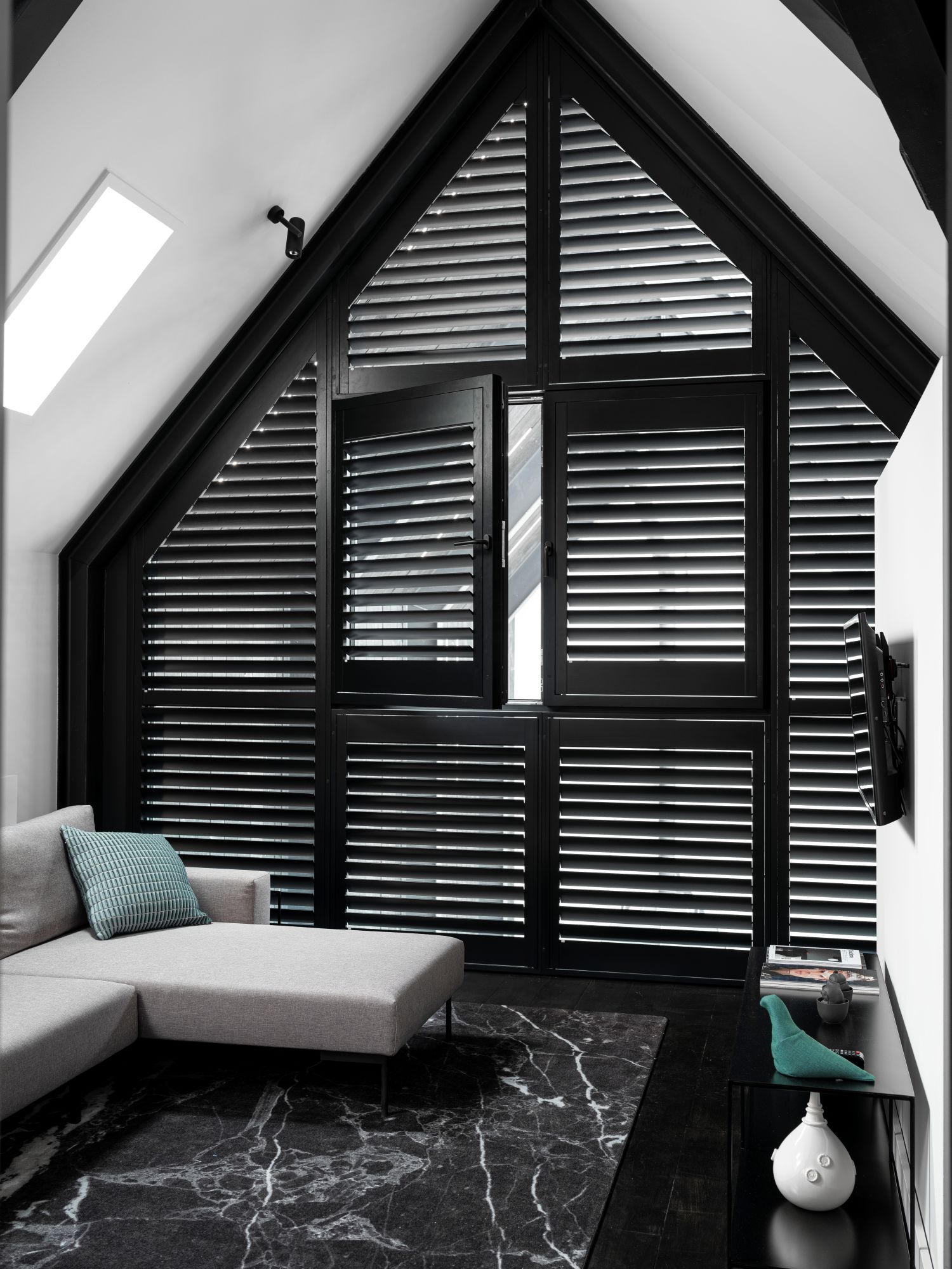 Bovendien kan een zolder snel opwarmen. Door de perfect aansluitende shutters als raamdecoratie blijft de hitte buiten in de zomer en de warmte binnen in de winter, een isolerend effect.