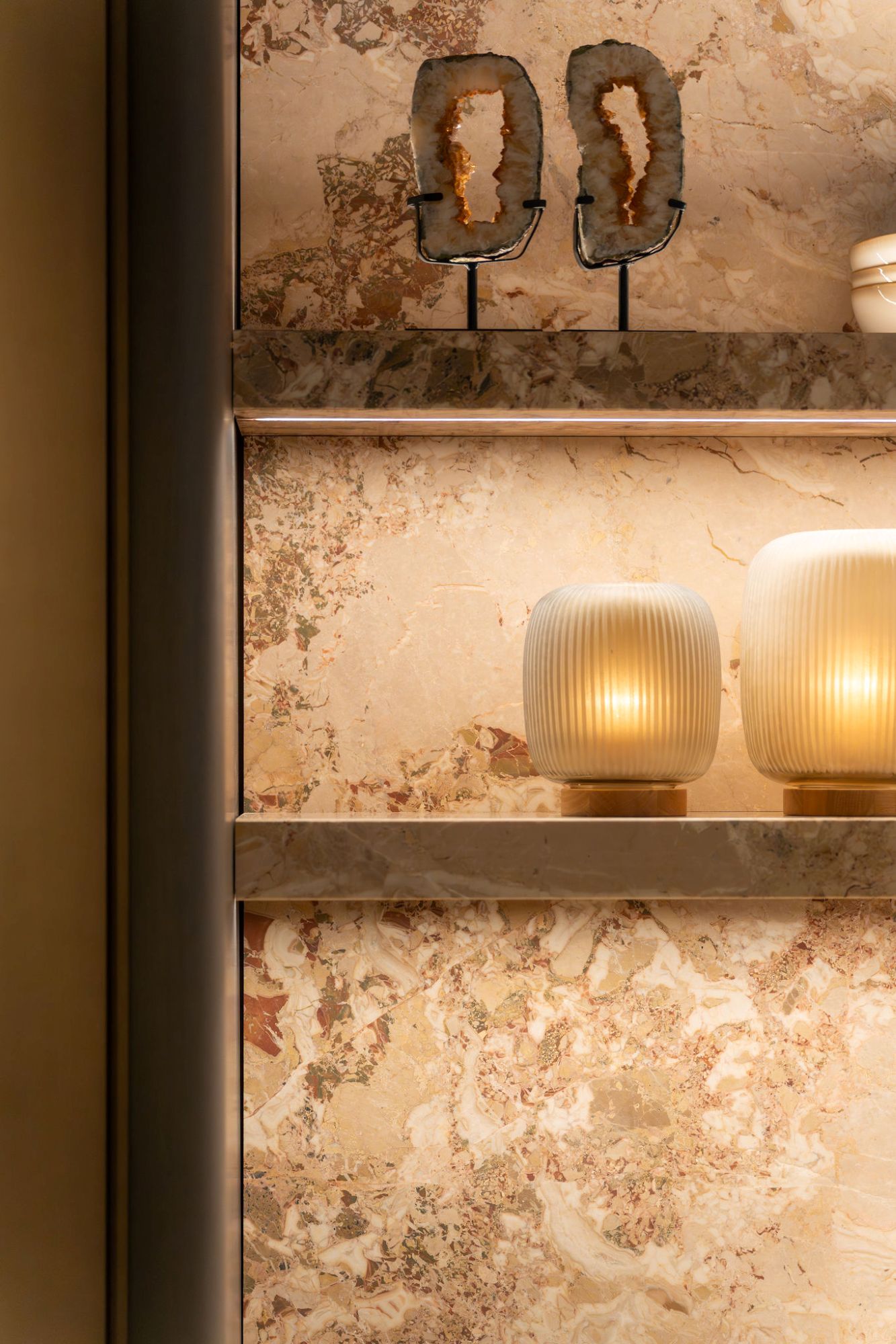 De complete stand werd volledig domotica gestuurd met Basalte. Alle techniek is strak en minimalistisch geïntegreerd en afgewerkt in een elegante bronze kleurstelling, passend bij de luxe uitstraling van de stand. Met de Basalte Lena of Sentido wandbediening kon eenvoudig alle verlichting worden aangestuurd en konden verschillende lichtscènes worden geschakeld, afgestemd op sfeer, moment en beleving.