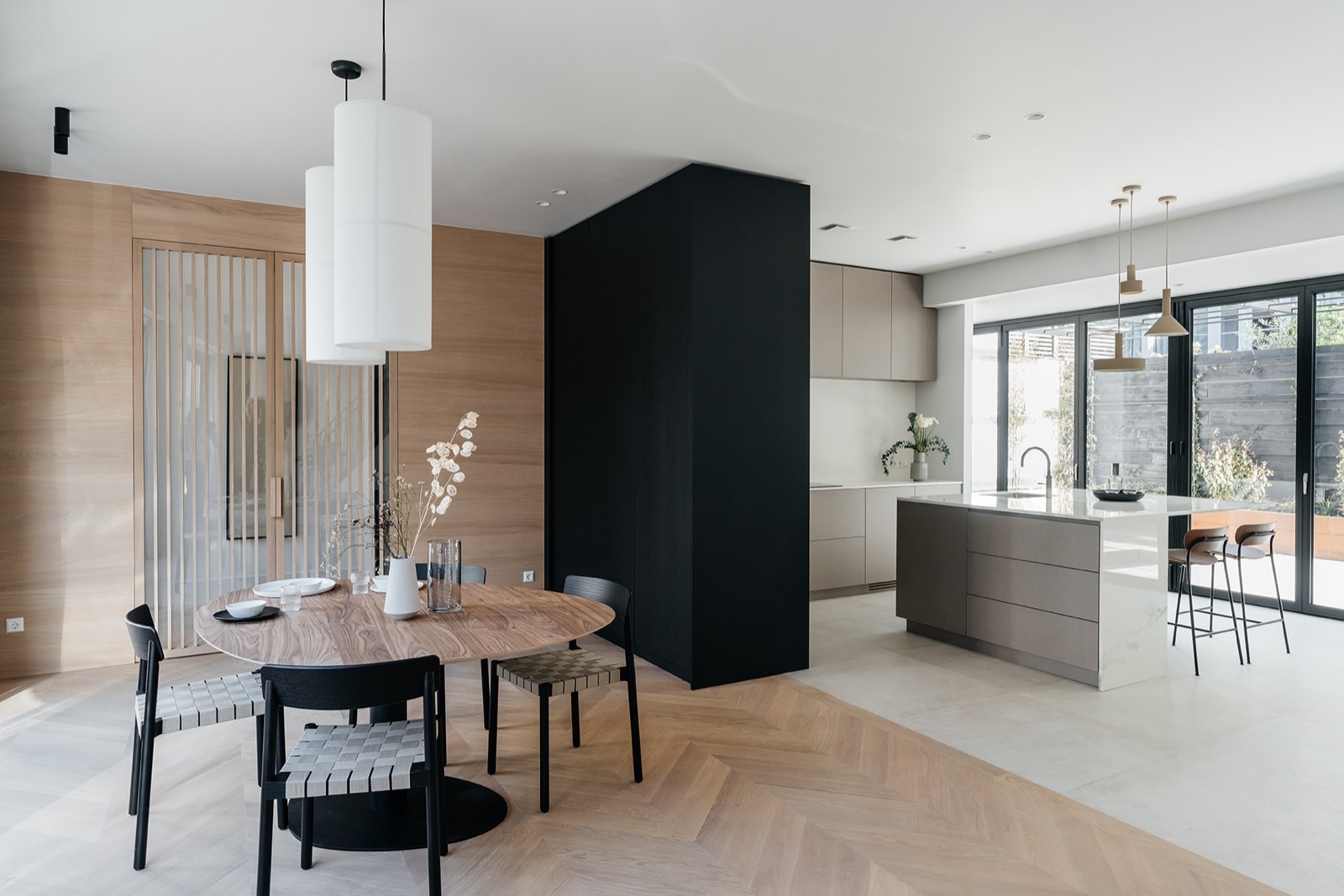 Aansluitingen. Overgangen. Installaties die verdwijnen in maatwerk. Materialen die samenkomen in millimeters.