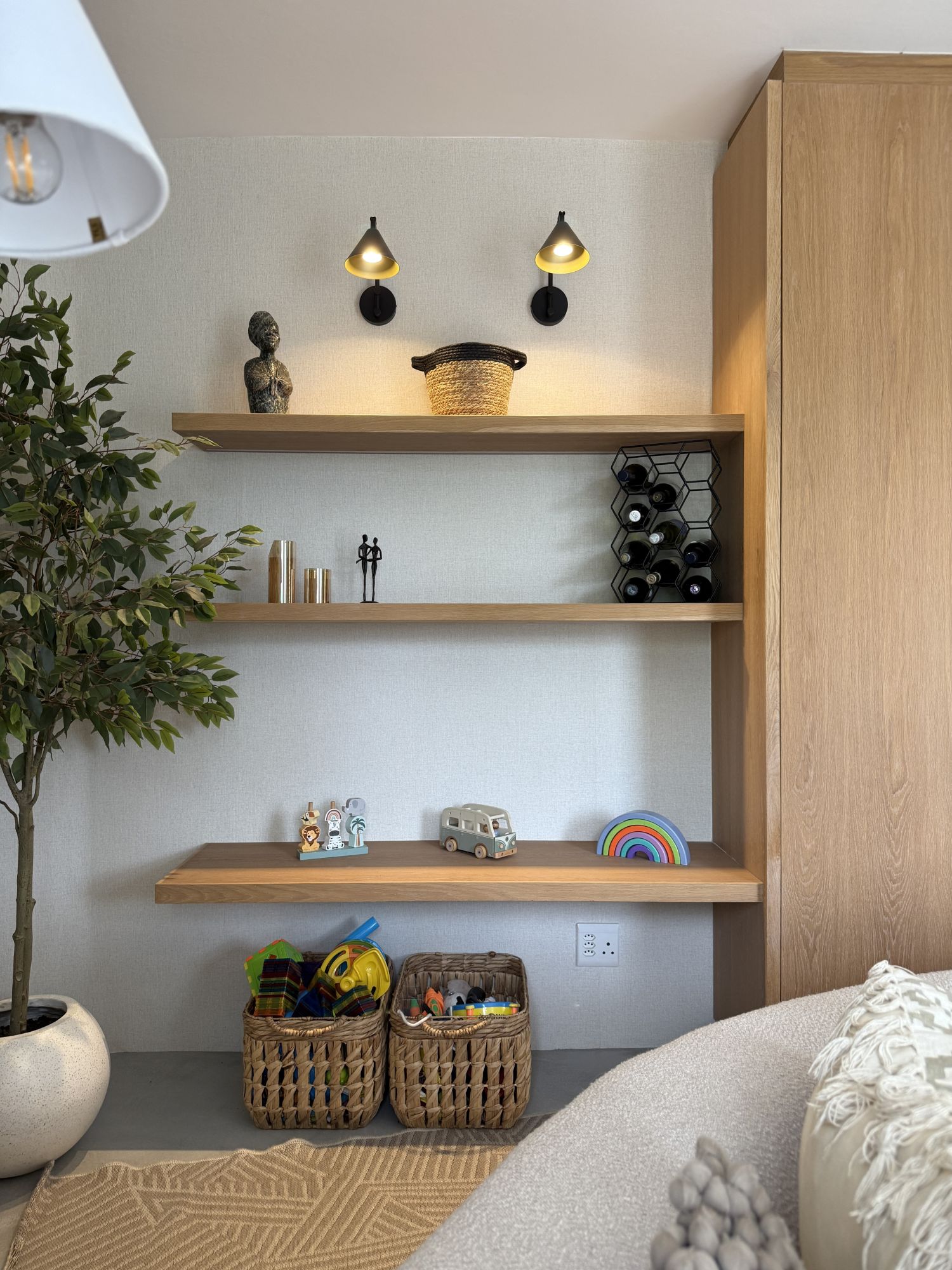 - Wanddecoratie: Gebruik een subtiel kleurvlak op de muur of stijlvolle wandplanken om de hoogte in te gaan met de favoriete boeken van je kind.