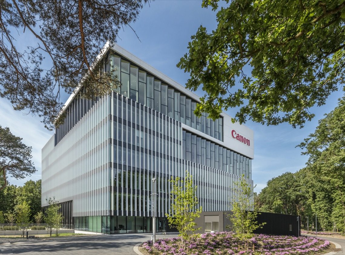 Aansluitend op de innovatieve werkomgeving op de ‘4 werkvloeren’ heeft M+R de representatieve ruimten ontworpen zoals het restaurant; de ontmoetingsruimten, de huiskamers; het vergadercentrum, de boardroom en een auditorium met een capaciteit van 170 personen. Hier zijn voornamelijk duurzame materialen verwerkt. De uitdaging voor ons was dat de bosrijke omgeving, het gebouw en het interieur naadloos in elkaar overgaan; een volledige synthese van de architectuur met het interieur, tijdloos, innovatief en duurzaam. Het gehele gebouw is als een ‘Gesamtkunstwerk’ waarbij de toepassingen van de print techniek van Canon is vertaald naar onderdelen van het interieur. Als beeldelement zijn de X-frames in het gebouw en de bosrijke omgeving vertaald naar een grafisch beeld voor onder andere het printen van de speciale gordijnen en de privacy folie. M+R heeft voor het project een volledige manual ontwikkeld voor de ‘customer journey, op basis van de corporate identity van Canon. Onderdeel hiervan is de bewegwijzering van het gehele terrein en het hoofdkantoor; hierbij zijn het verleden; heden en toekomst vertaald in het gebouw. Op het terrein is een boswandeling onderdeel van het geheel met sculpturen uit het kunstbezit van Canon en is er een draaiboek voor de kunsttoepassing in het interieur gemaakt.
