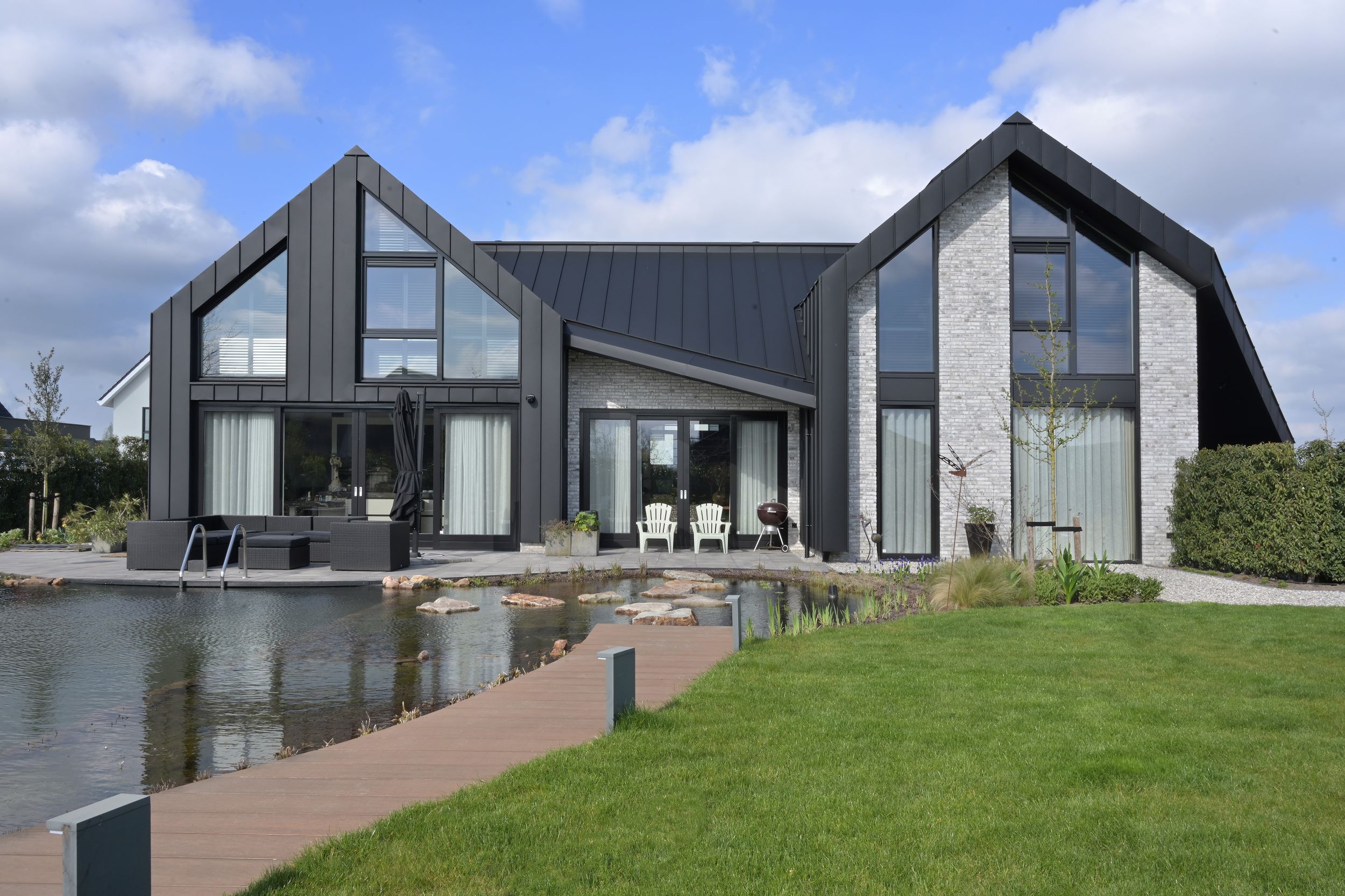 Aan de groene grens in Veenendaal is er een geheel eigenwijze woning gebouwd. Deze unieke woning is gesplitst in twee volumes en volledig bedekt met zwart aluminium velzen, door Duinkerken Dak & Zink uit Maarsbergen.